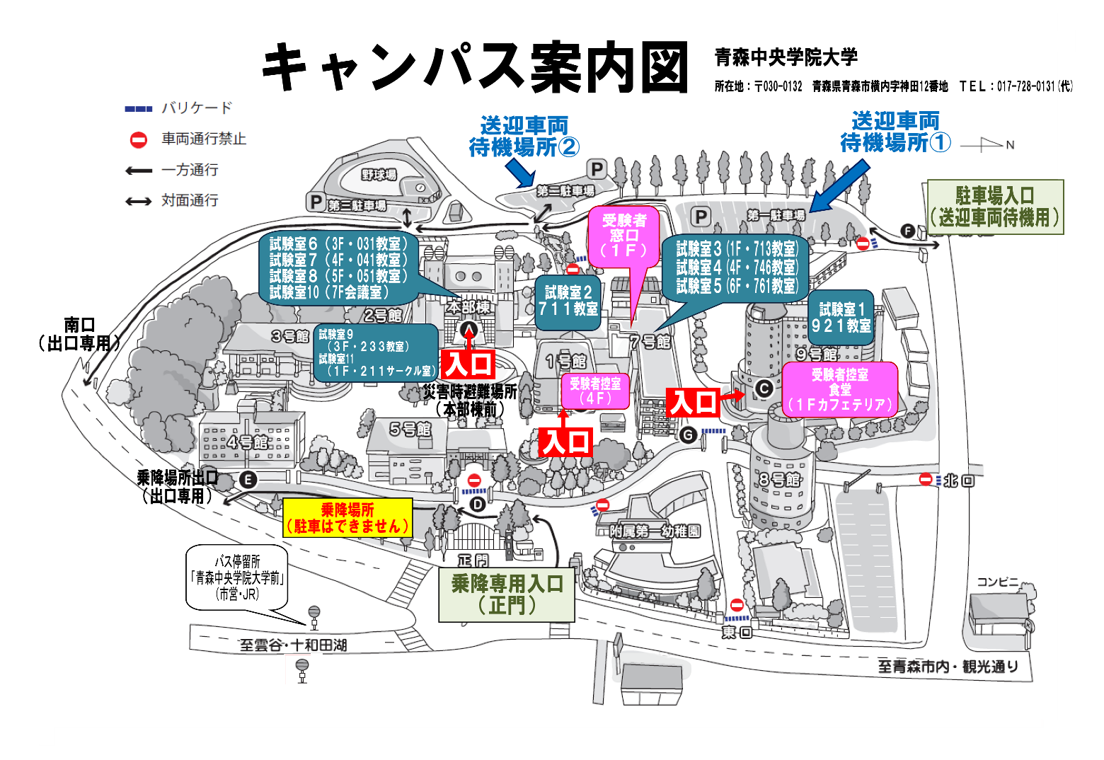 ・「父母・引率控室」はございません。大学構内建物での待機はできませんので、ご注意ください。