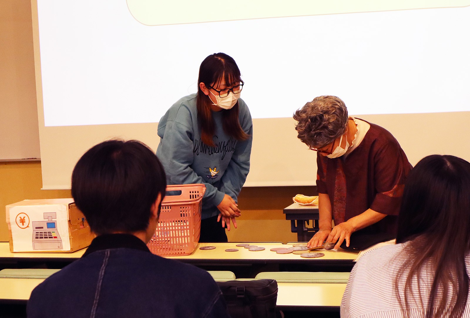 講座では、基本的な認知症の知識について講義を受け、認知症の方とどのように接するべきか、買い物での様子を例に、話し合いやデモンストレーションで理解を深めました。