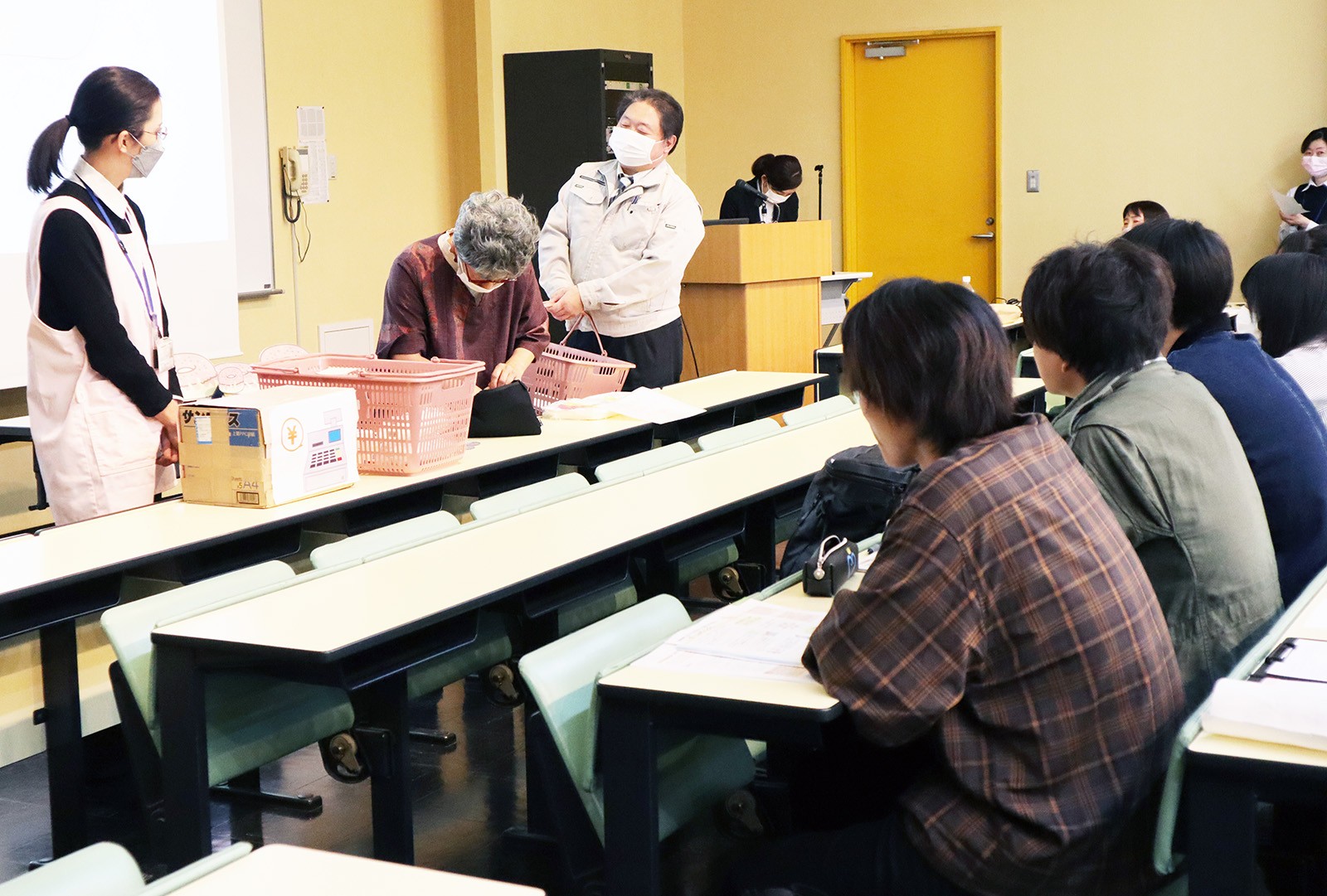 グローバルゼミでは日頃、主に社会保障政策に関するデータ分析を行っていることから、データだけではわからない日常生活の場面での問題について学ぶために、青森市南地域包括支援センターの専門職の方を招いて、認知症サポーターを養成するための講座を受講しました。