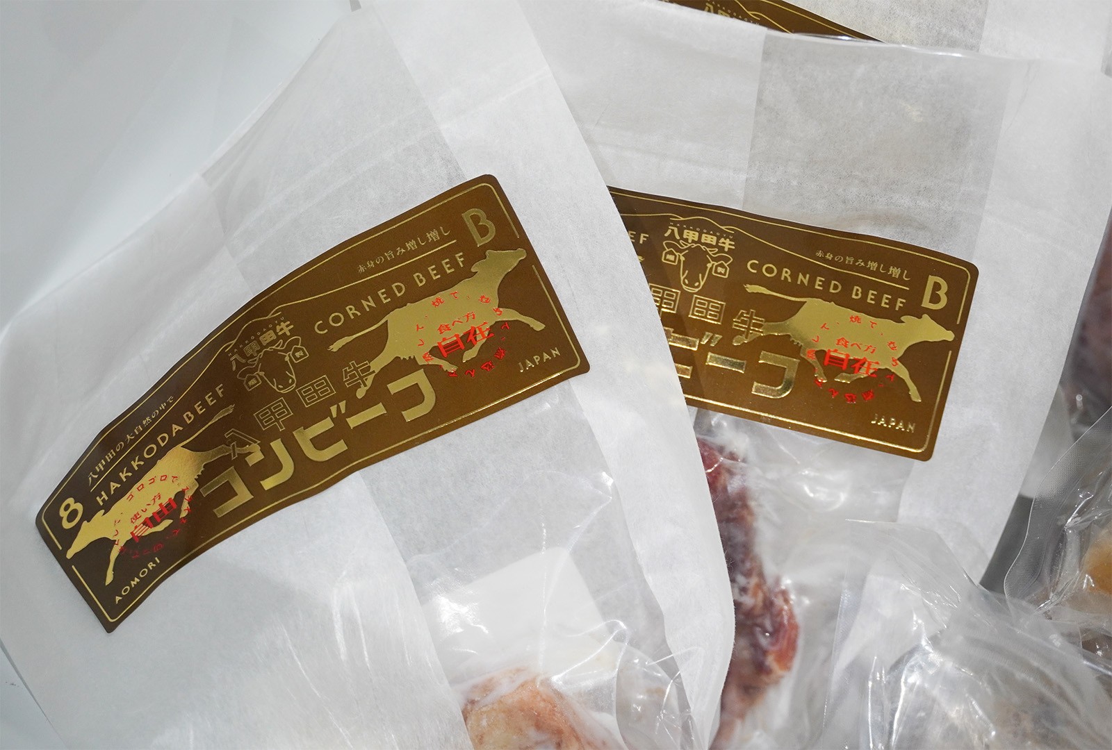 販売された「八甲田牛コンビーフ」は、八甲田牛の需要が低い部位の活用をめざした青森市と株式会社いしおか、青森中央学院大学との産学官連携商品です。モモやバラの切り落とした部位を活用し、スライスとほぐしで2種類の味わい方が可能な商品です。