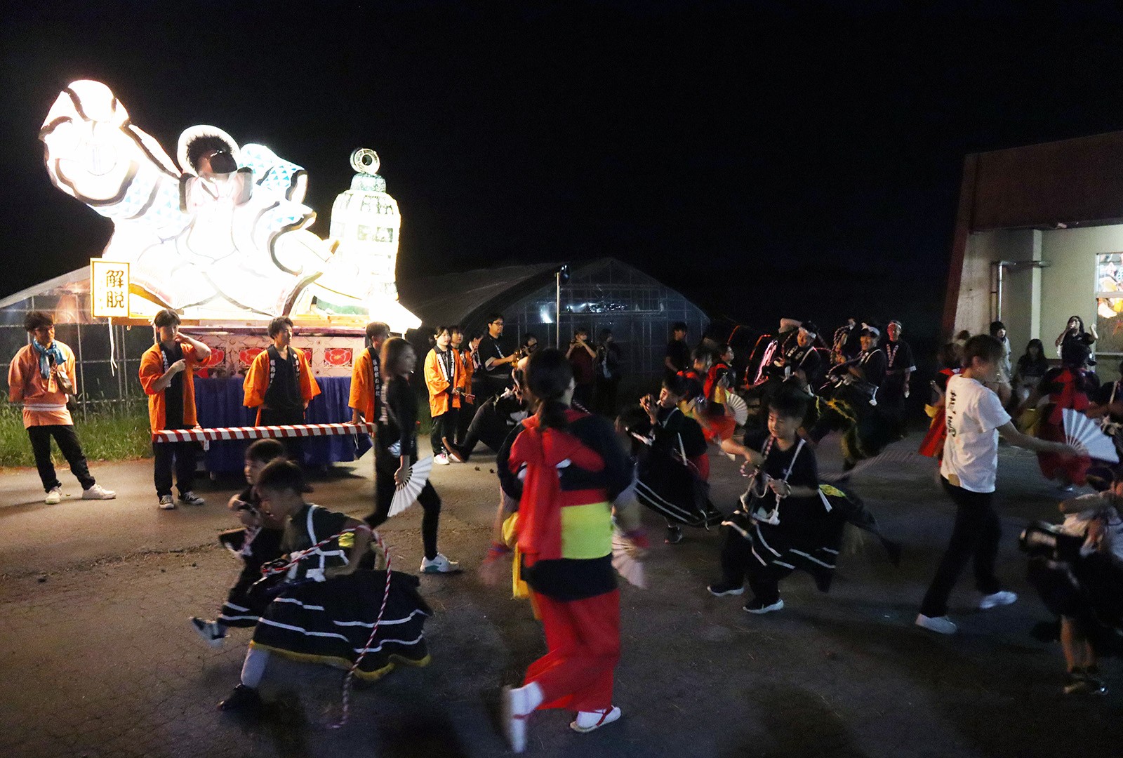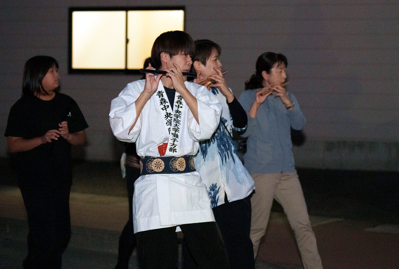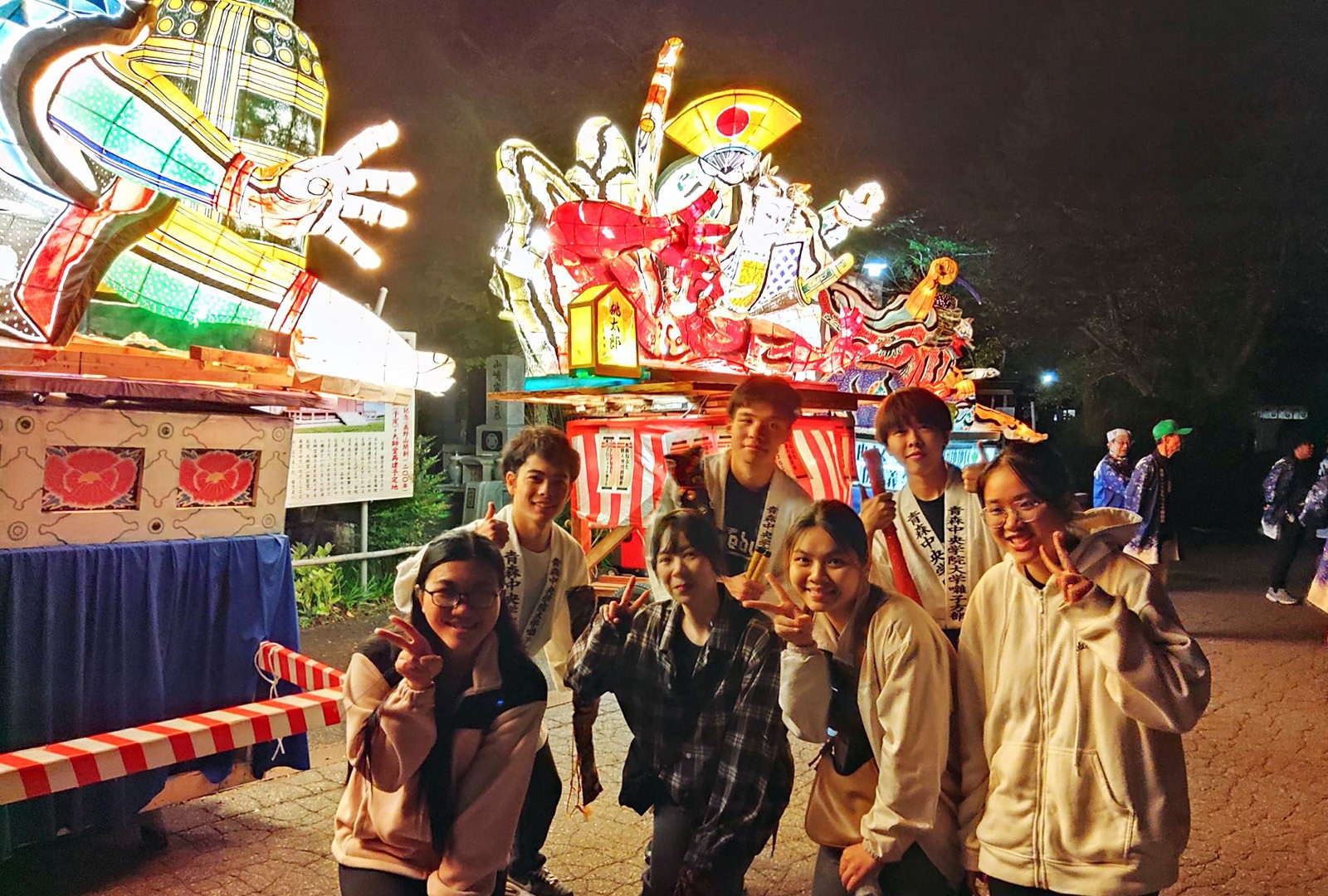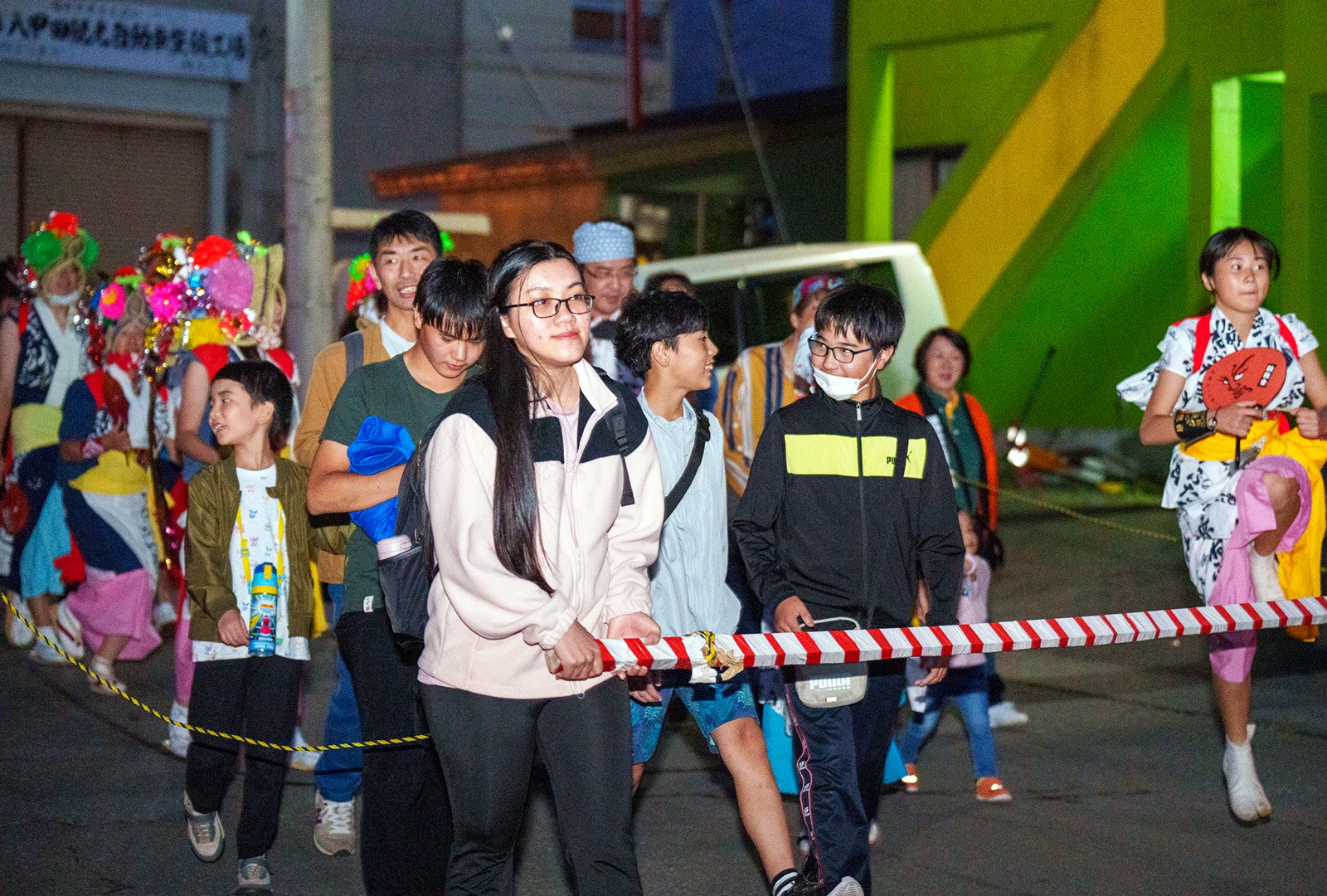 本学の翔麗祭と同日のねぶた運行となりましたが、留学生やねぶた囃子方サークルの学生が運行をサポートし、夜の横内地区をにぎやかに盛り上げました。