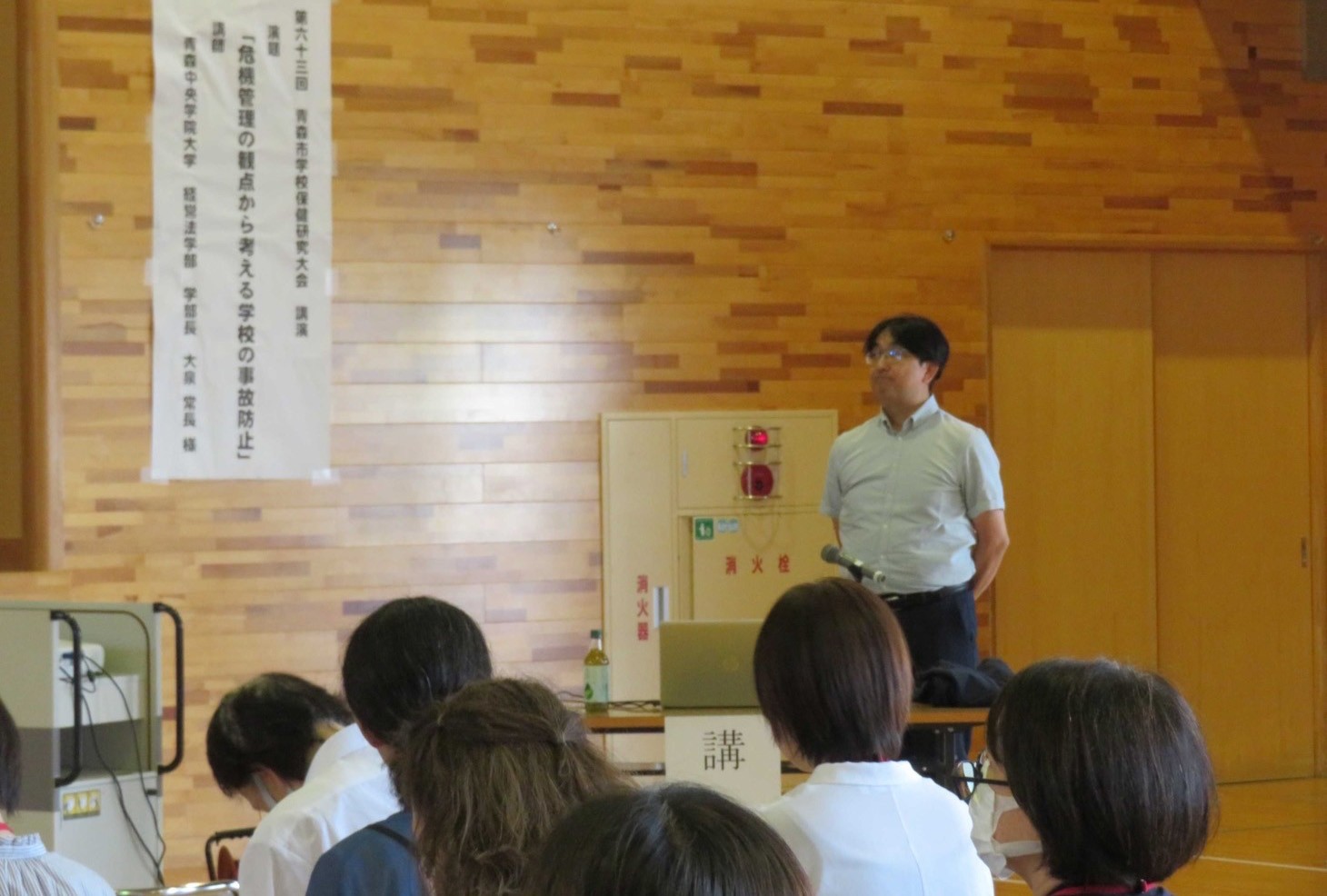 2025年9月26日、経営法学部長の大泉常長教授(危機管理学)が、青森市教育委員会主催の「第63回青森市学校保健研究大会」で講演しました。 講演は「危機管理の観点から考える学校の事故防止」をテーマに、学校管理下で発生し得る様々な事故について、事例を通して、「抑止の観点からリスクマネジメントのメカニズム」や、「児童・生徒を対象としたリスク教育の在り方」等を解説しました。