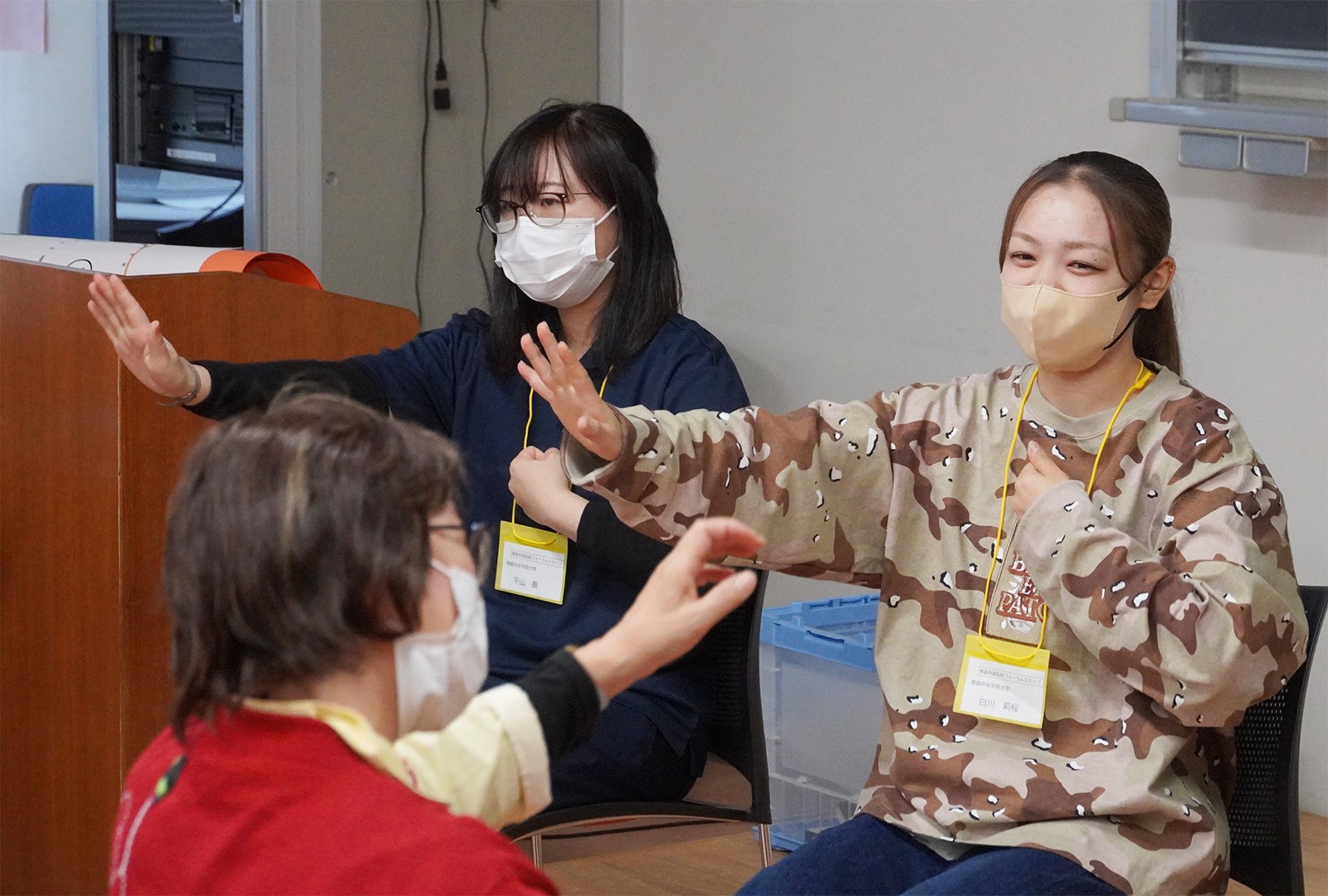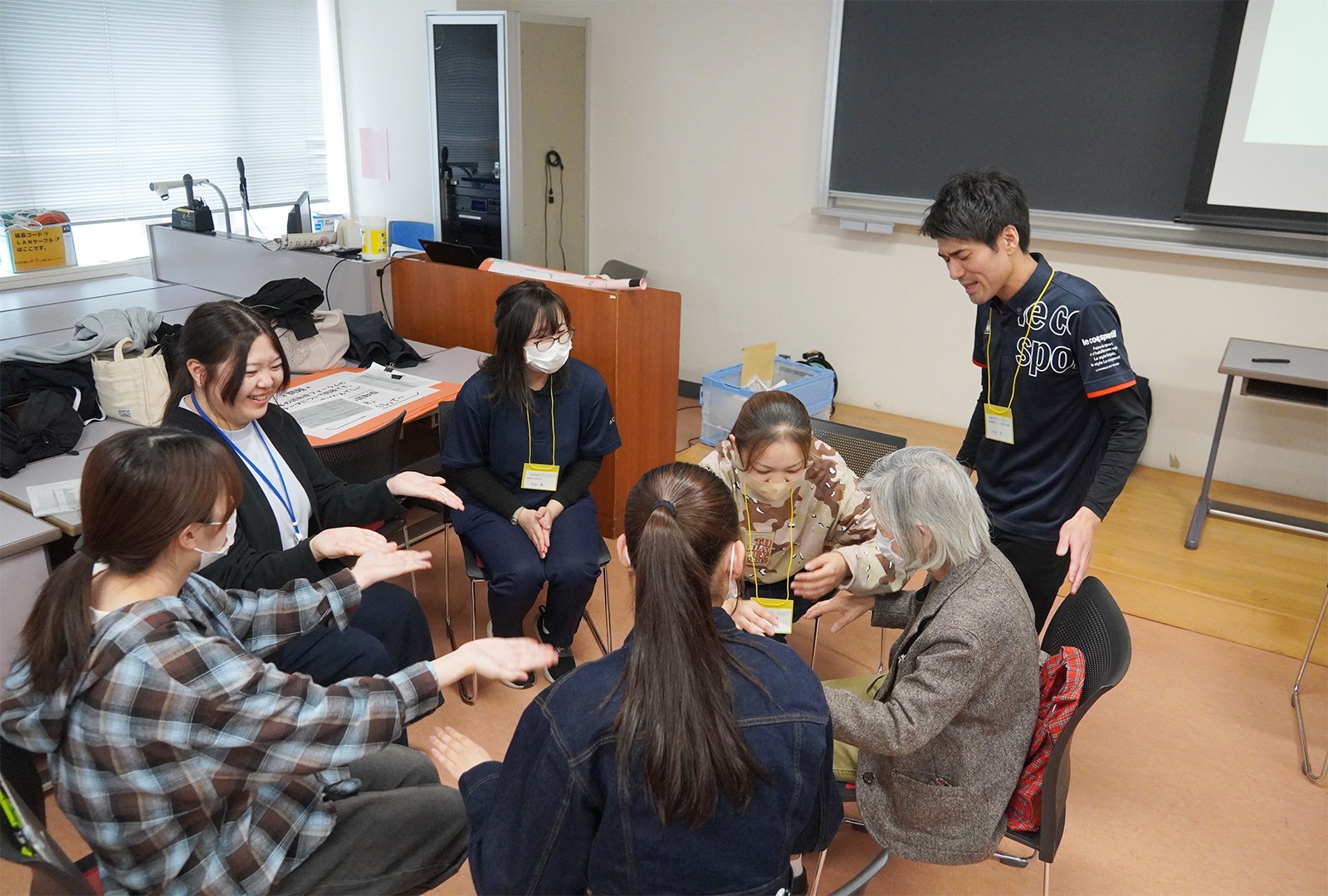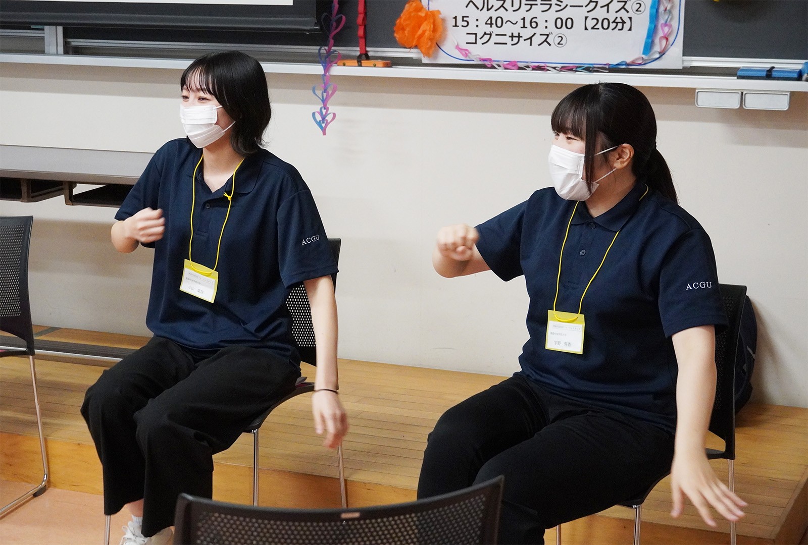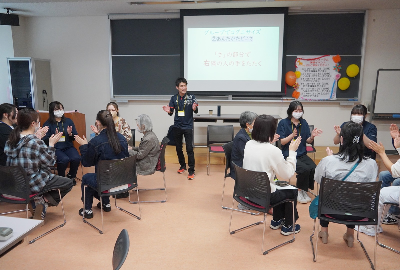 学生たちは「コグニサイズ(認知と運動を組み合わせた認知症予防を目的とした運動プログラム)」を行い、参加者のみなさんは楽しみながら体験イベントに参加しました。