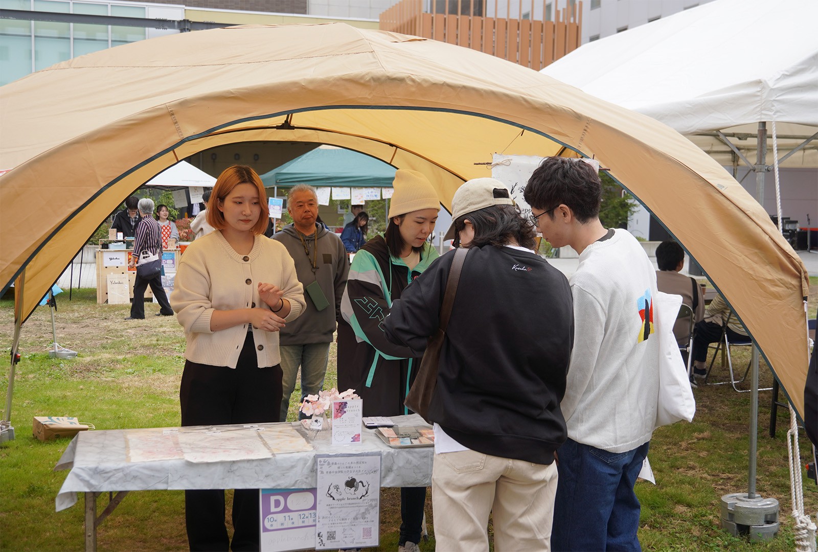 青森市役所本庁舎には、リンゴの木の剪定枝を使用した和紙の栞等を販売した「applebranch(アップルブランチ)」が11日と13日に出店しました。