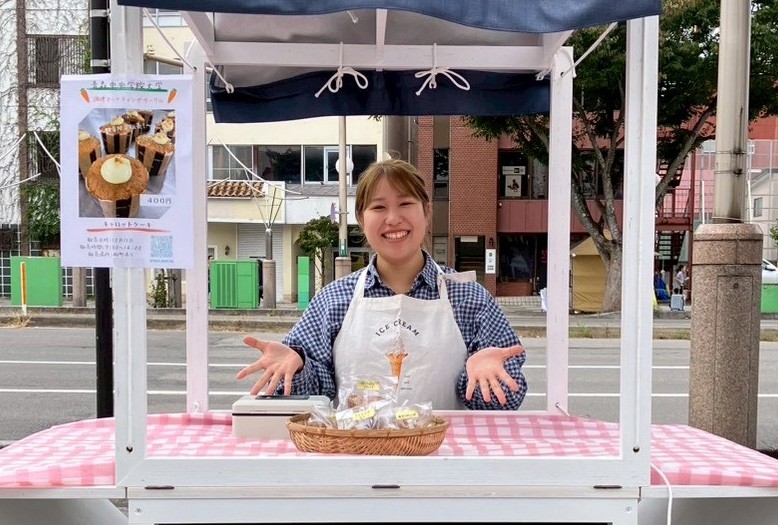 「調理・マーケティングサークル」は今年4月に、新町サテライトキャンパスで1日限定SHOPを出店し完売したキャロットケーキを11日に販売し、お昼頃には完売しました。