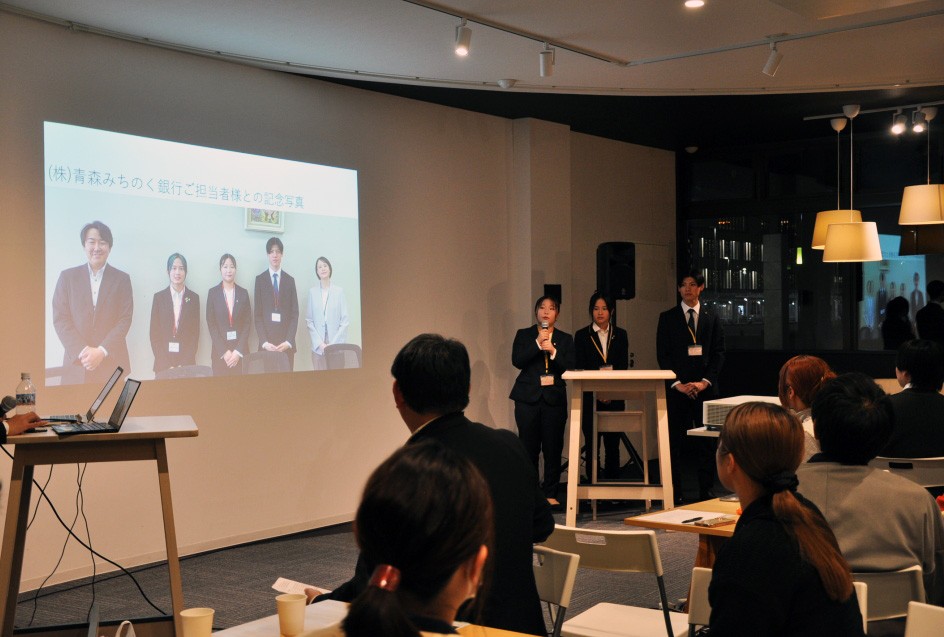青森市産官学連携プラットフォーム(主管;青森商工会議所)と青森県雇用対策協議会が主催し、青森市内の大学生が地域の企業・団体等からの課題に対し、企業等と連携しながら、課題解決を目指すプログラム「AOMORI未来創造ラボ」の活動経過報告会を開催し、これまでの活動及び今後の実施計画について参加学生が発表しました。