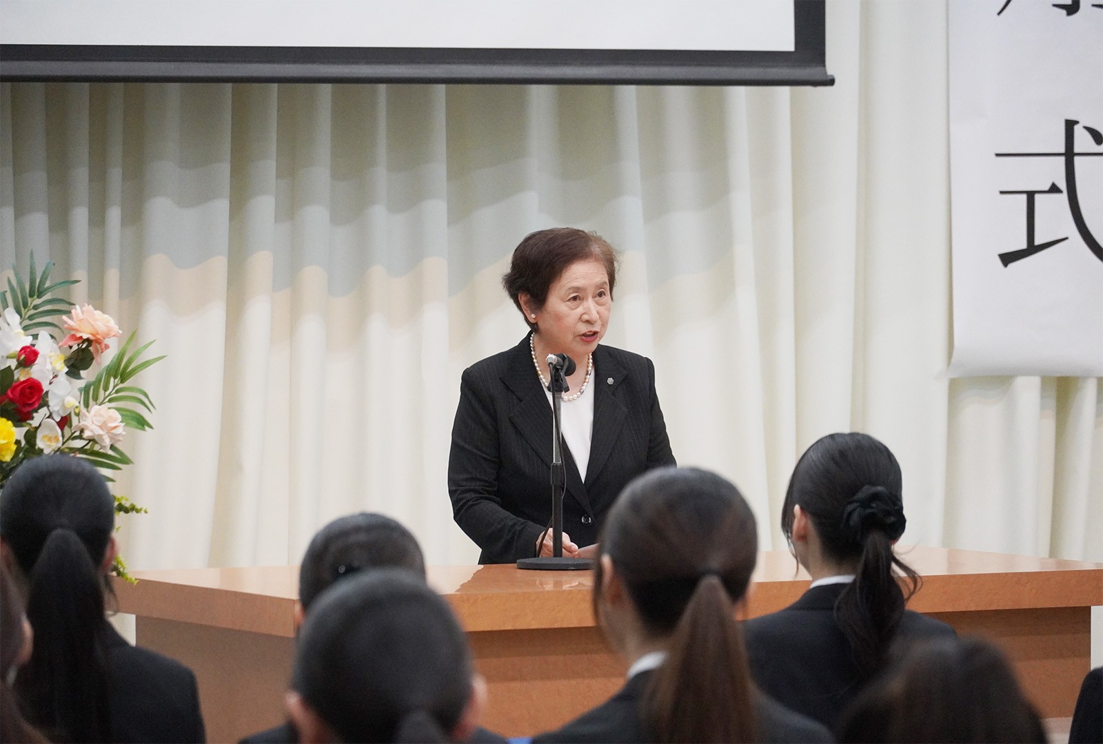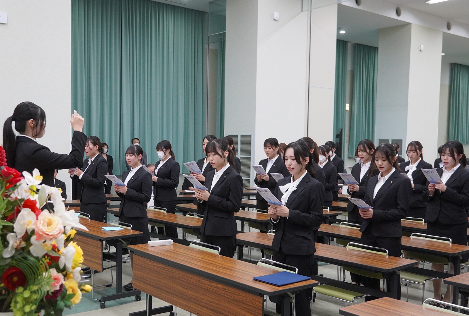 式では、一戸とも子学部長のあいさつをはじめ、実行委員からポスターやメッセージボード、映像作成についての説明があり、学生一人一人の「学修の志」を上映して、学生代表が「誓いの言葉」を宣誓しました。