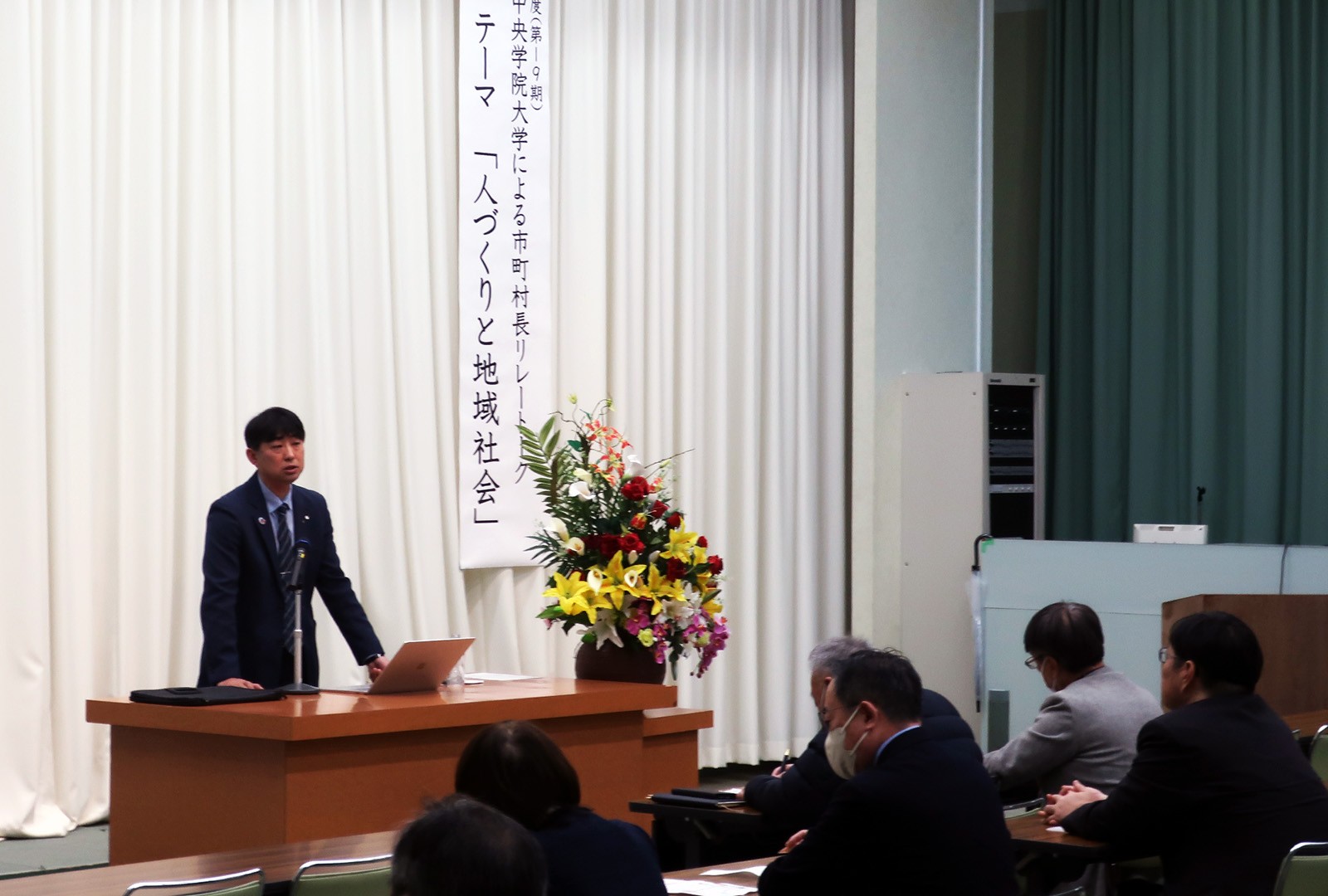 第19期となる本学公開講座「市町村長リレートーク」の2025年度第1回は、講師に佐井村長の太田直樹氏をお迎えし、「学びの力で未来を切り拓く」をテーマに講話をしていただきました。