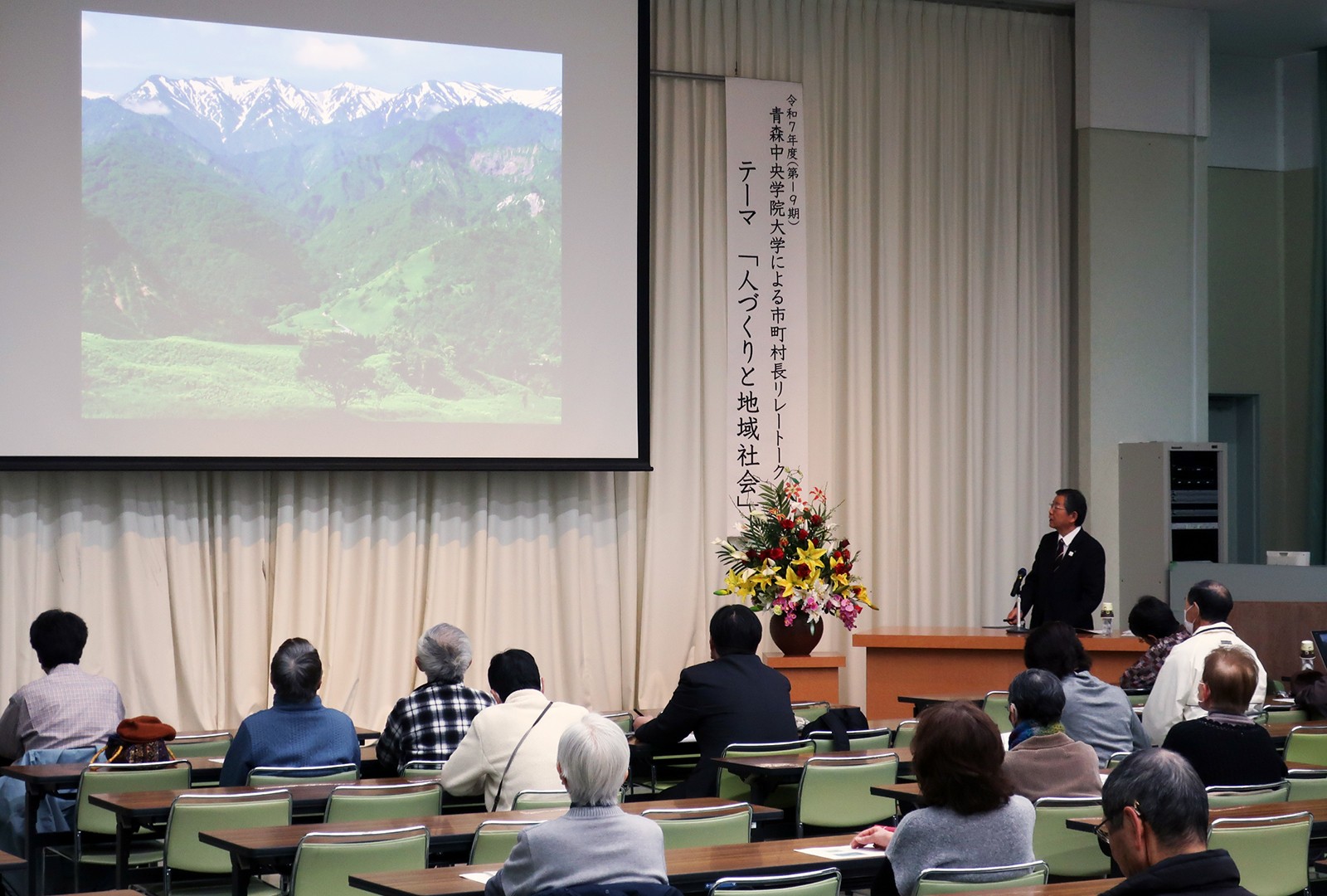 第19期となる本学公開講座「市町村長リレートーク」の2025年度第2回目は、講師に山形県小国町長の仁科洋一氏をお迎えし、「“自然を愉しみ みんながわくわくする 白い森の国 おぐに”を目指して」と題して、ご講演いただきました。