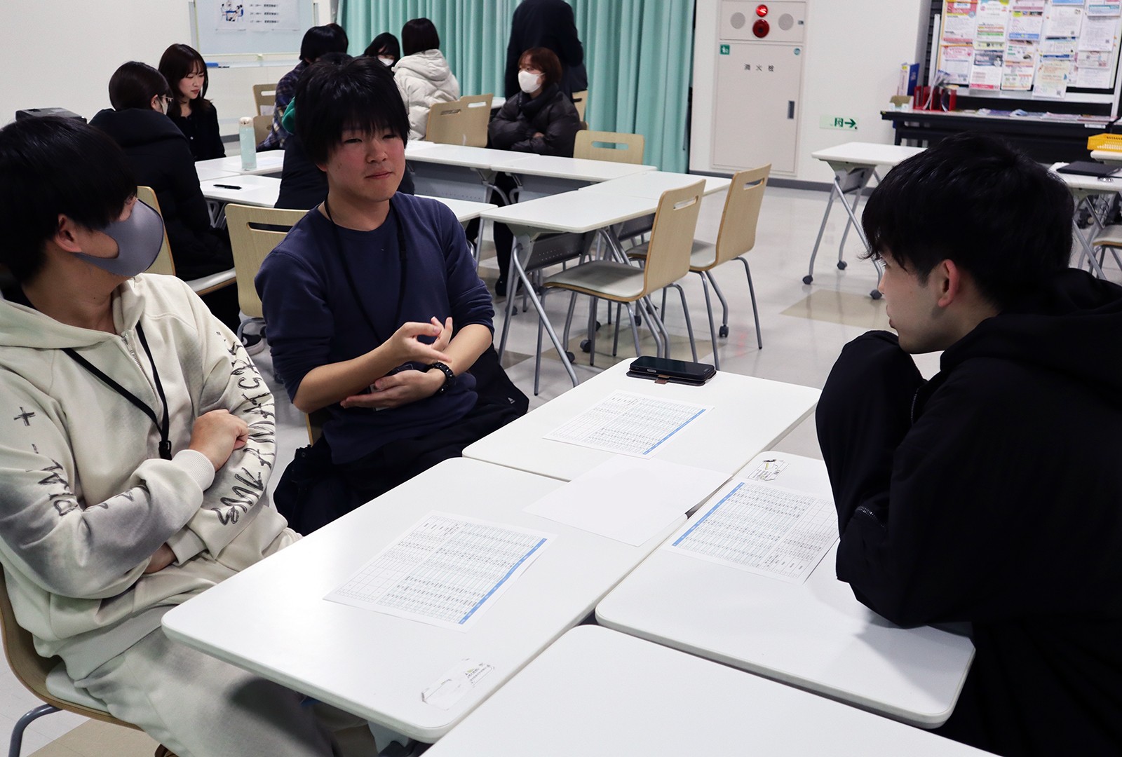 2026年3月卒業予定の経営法学部学生で、2025年12月5日現在で公務員に内定している27名の学生の中から9名が集まり、公務員志望の1年から3年までの学生と座談会を行いました。