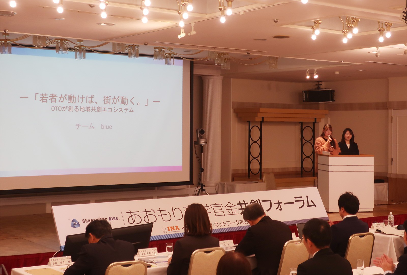 若者によるエンタメイベント企画運営を通じた青森定着支援Uターン促進事業を提案した「チームblue」が大学生部門最優秀賞を受賞しました。