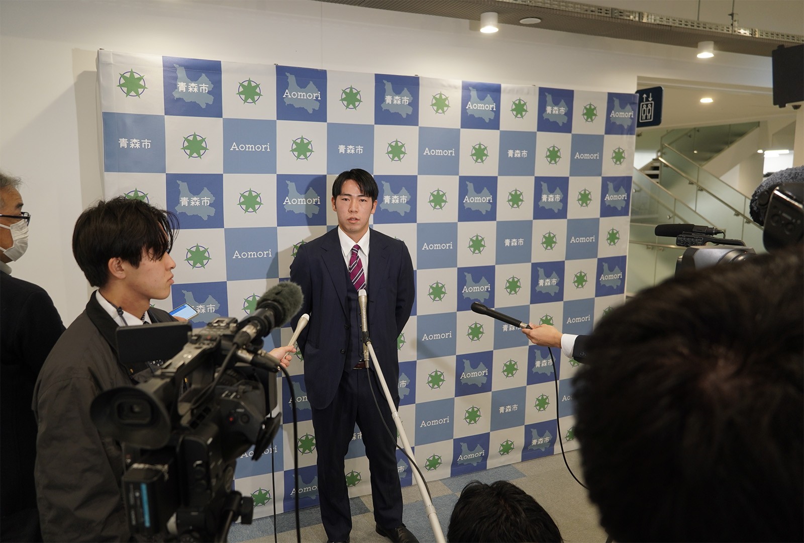 2025年12月18日、北海道日本ハムファイターズより育成2位指名を受けた横山永遠選手が西秀記青森市長を表敬訪問しました。