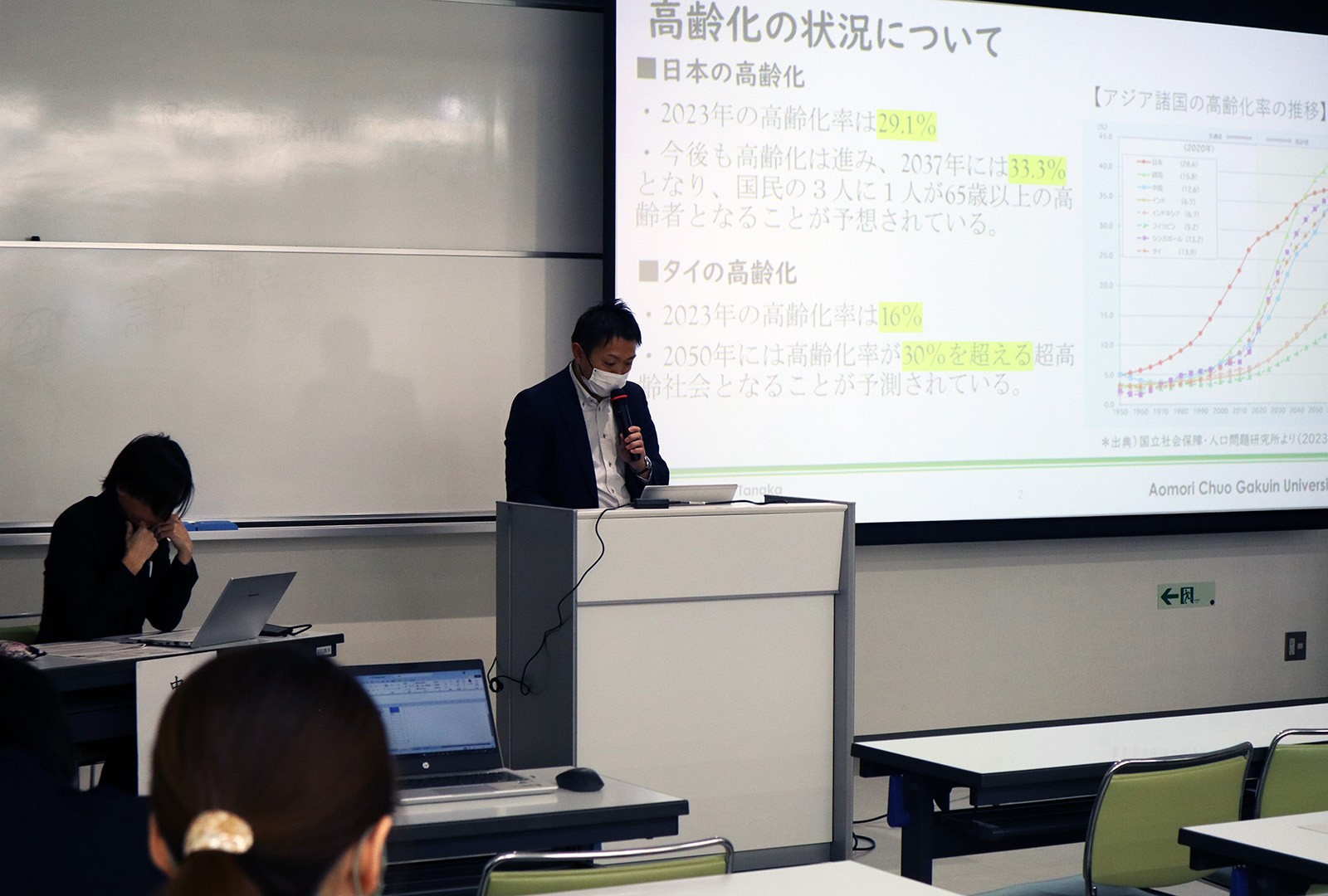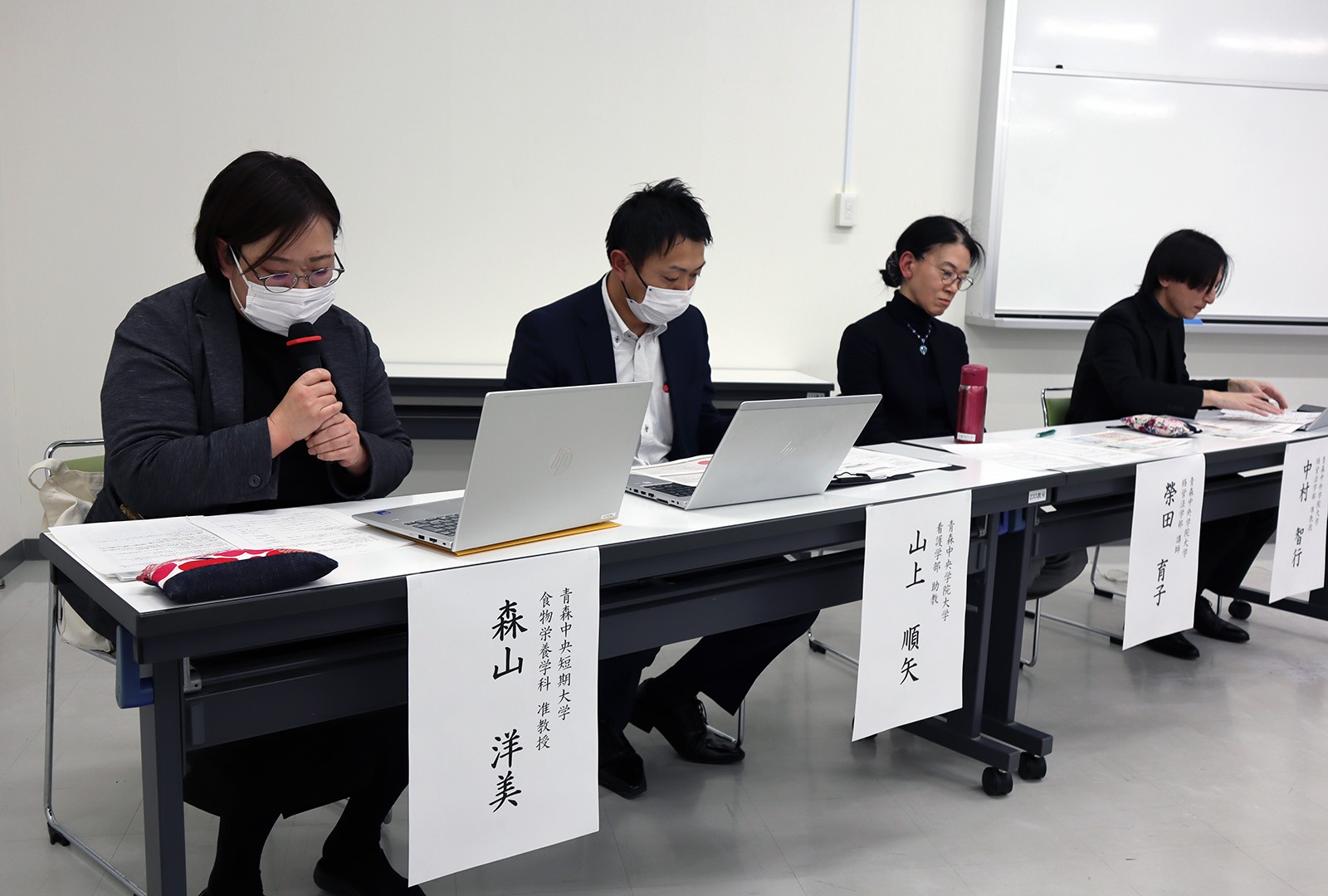 今年度は「地域のウェルビーイングを支える知の融合:健康・共生」と題して、青森中央学院大学の経営法学部と看護学部、及び青森中央短期大学 食物栄養学科の教員が、各自の研究内容をもとにプレゼンテーションしました。