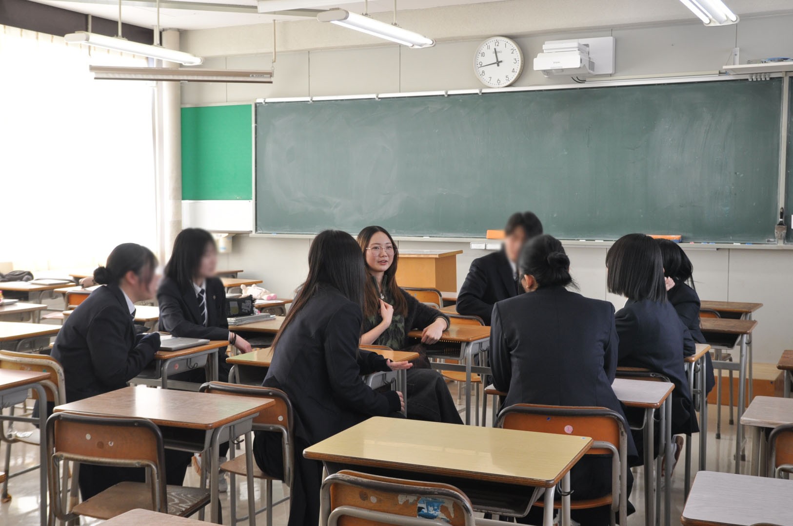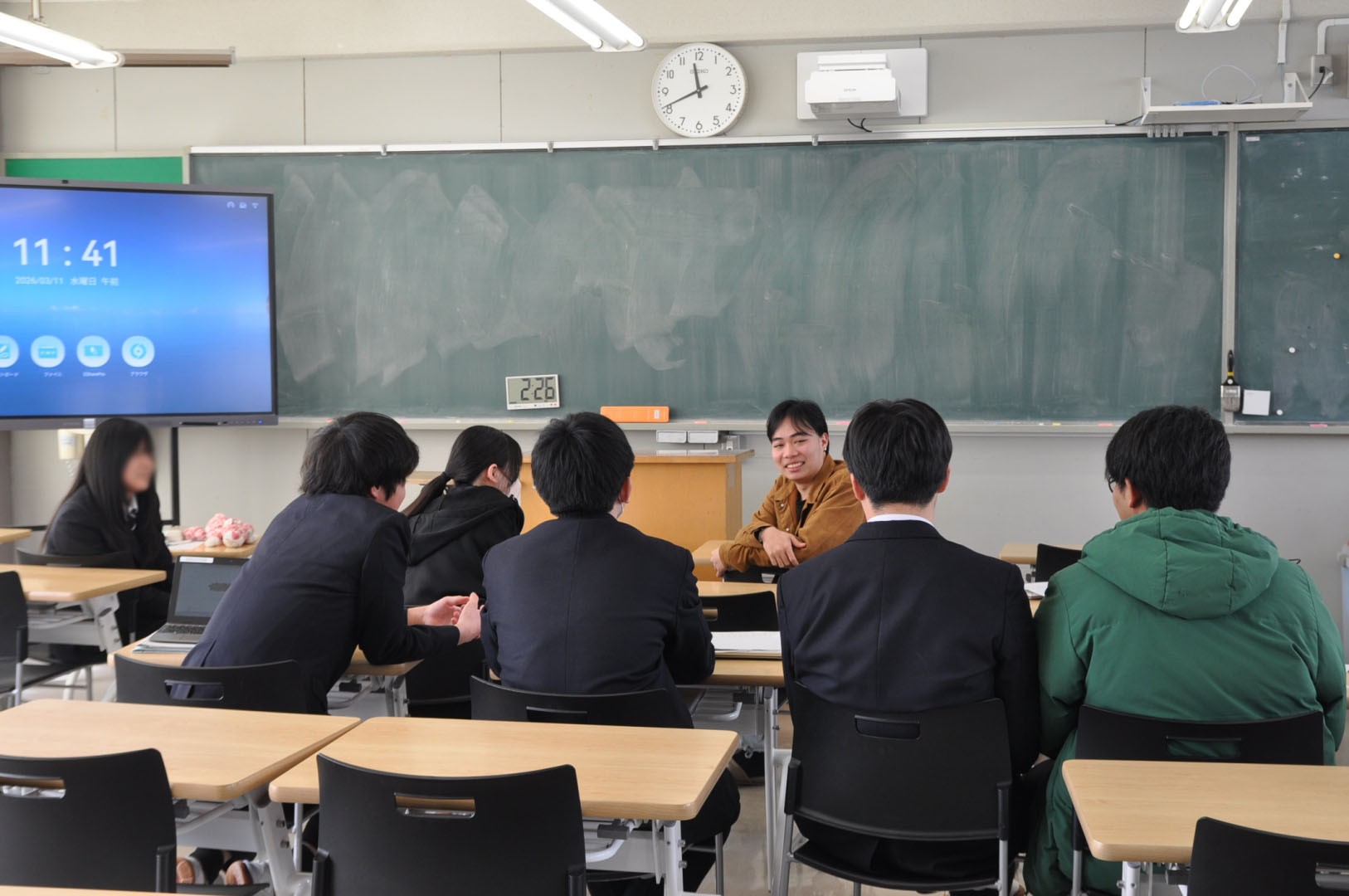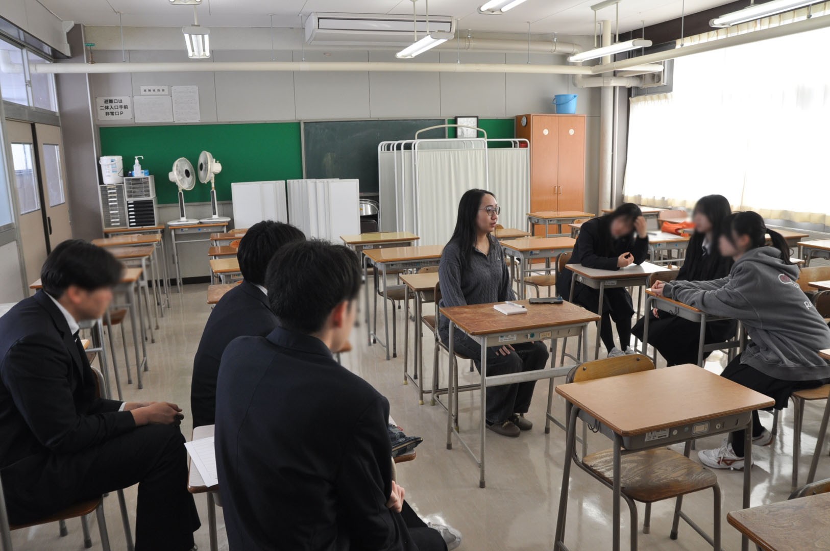 発表後に生徒と懇談する場面もあり、好きな食べ物や趣味などの話で盛り上がっていました。