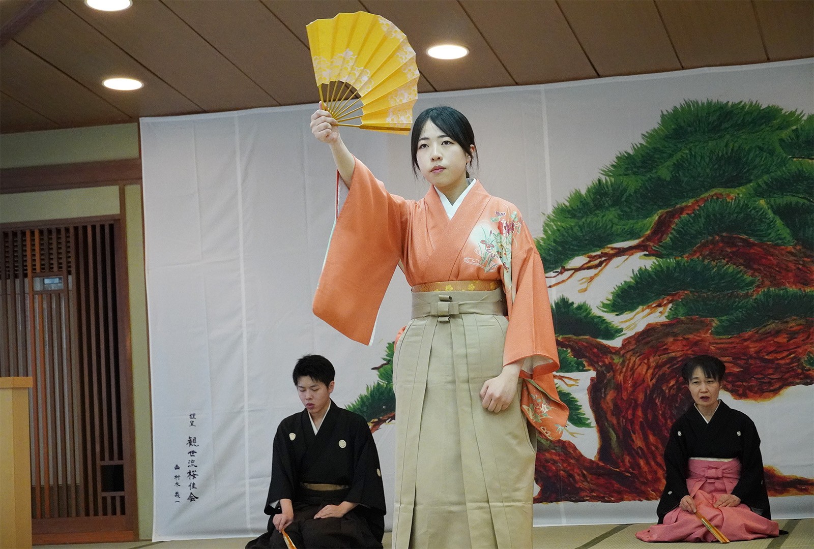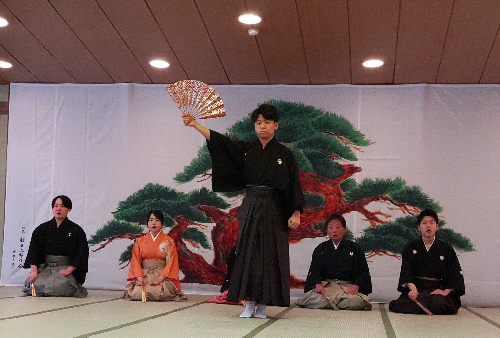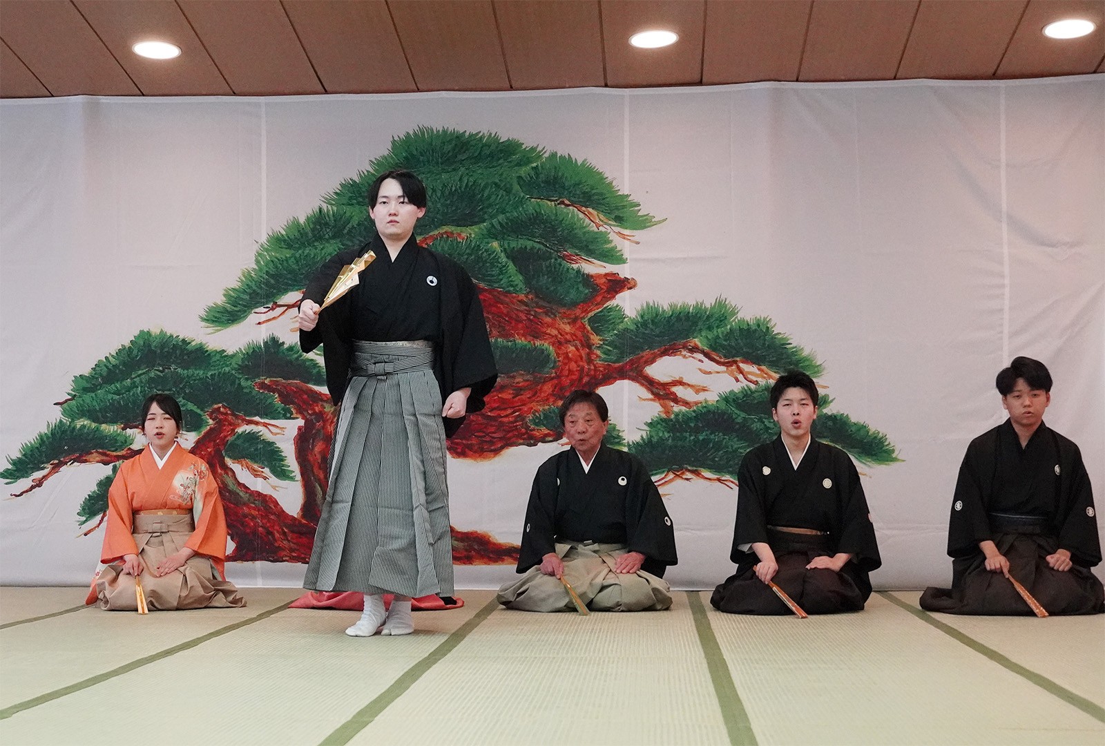 2026年3月22日、サークルを指導してくださっている観世流能楽師範宮崎佳子先生が主宰する「桜佳会」の舞台に、本学観世流能楽サークル「雅」の学生が出演させていただきました。 青森市の諏訪神社で開催され50名を超える観客の前で舞を披露しました。
