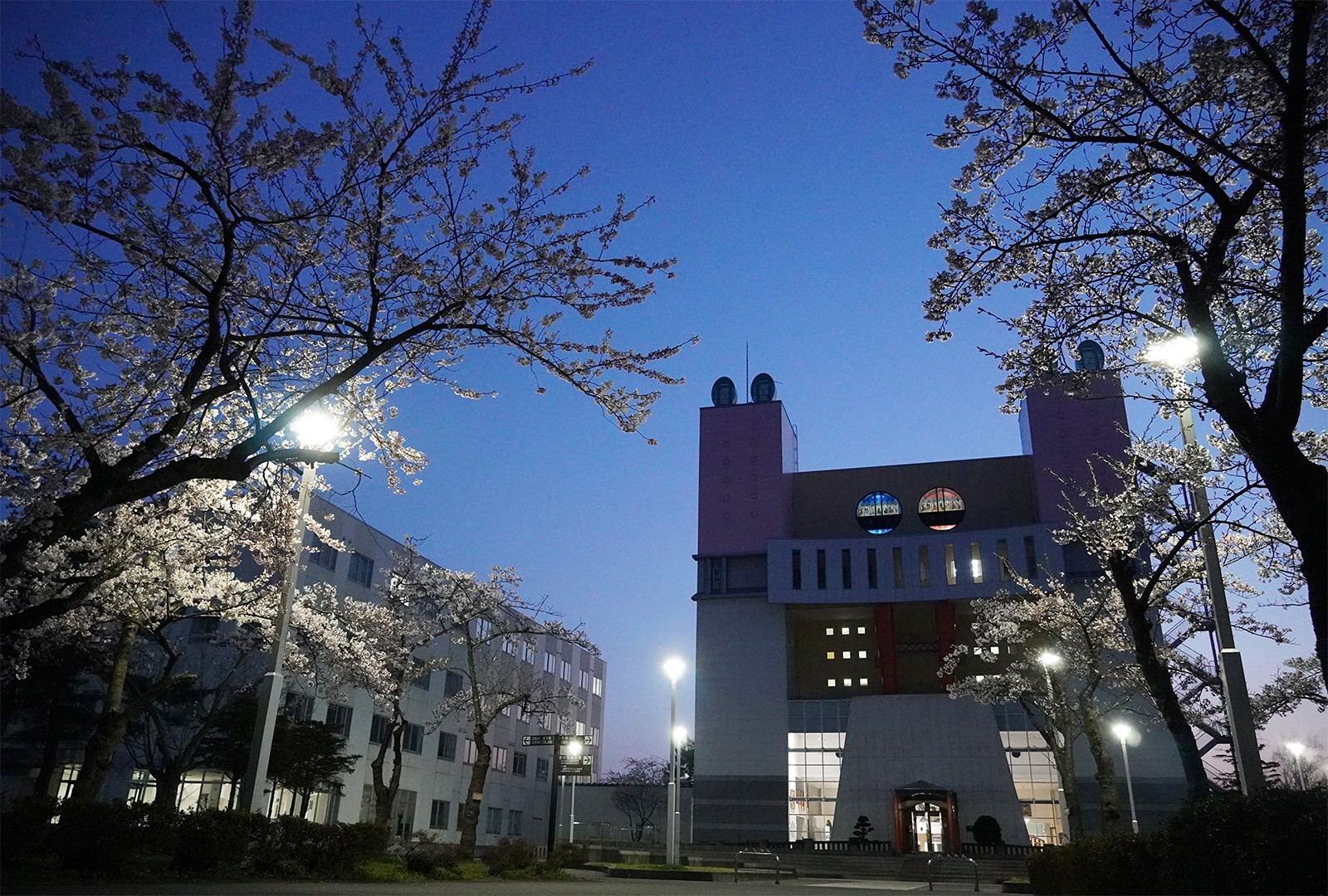 青森中央学院大学・青森中央短期大学のキャンパスでも桜が咲きました。 キャンパス内の桜は、1976年(昭和51年)6月11日に学園創立30周年記念として、当時の青森中央短期大学の学生たちが植樹したものです。