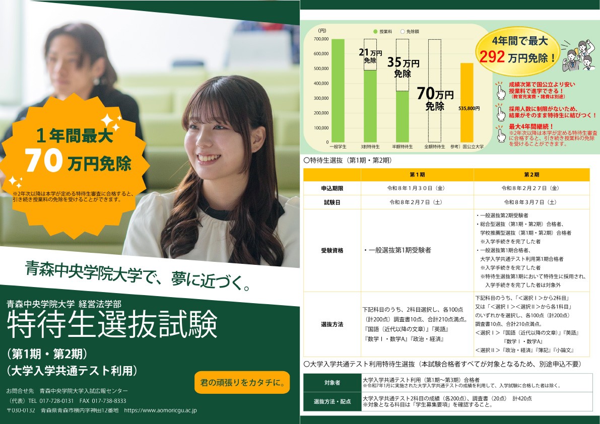 経営法学部 特待生(授業料免除)選抜試験の詳細
