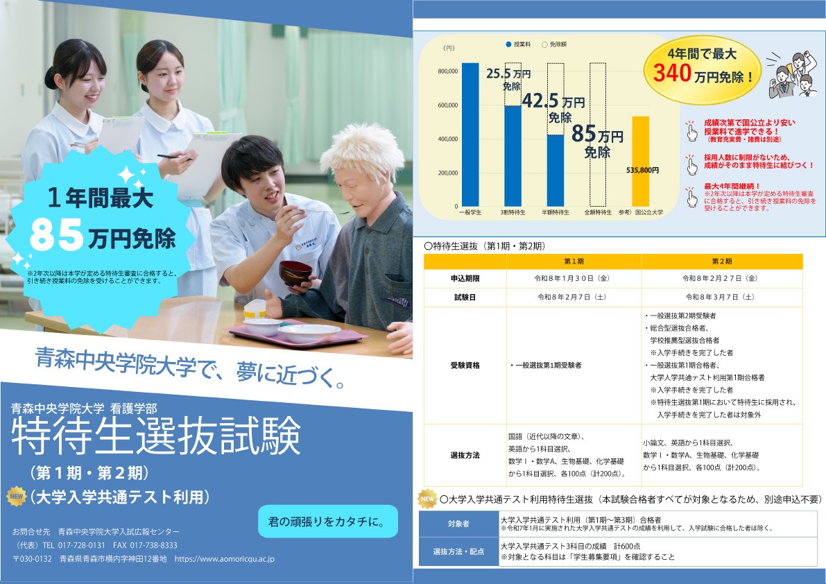 看護学部 特待生(授業料免除)選抜試験の詳細